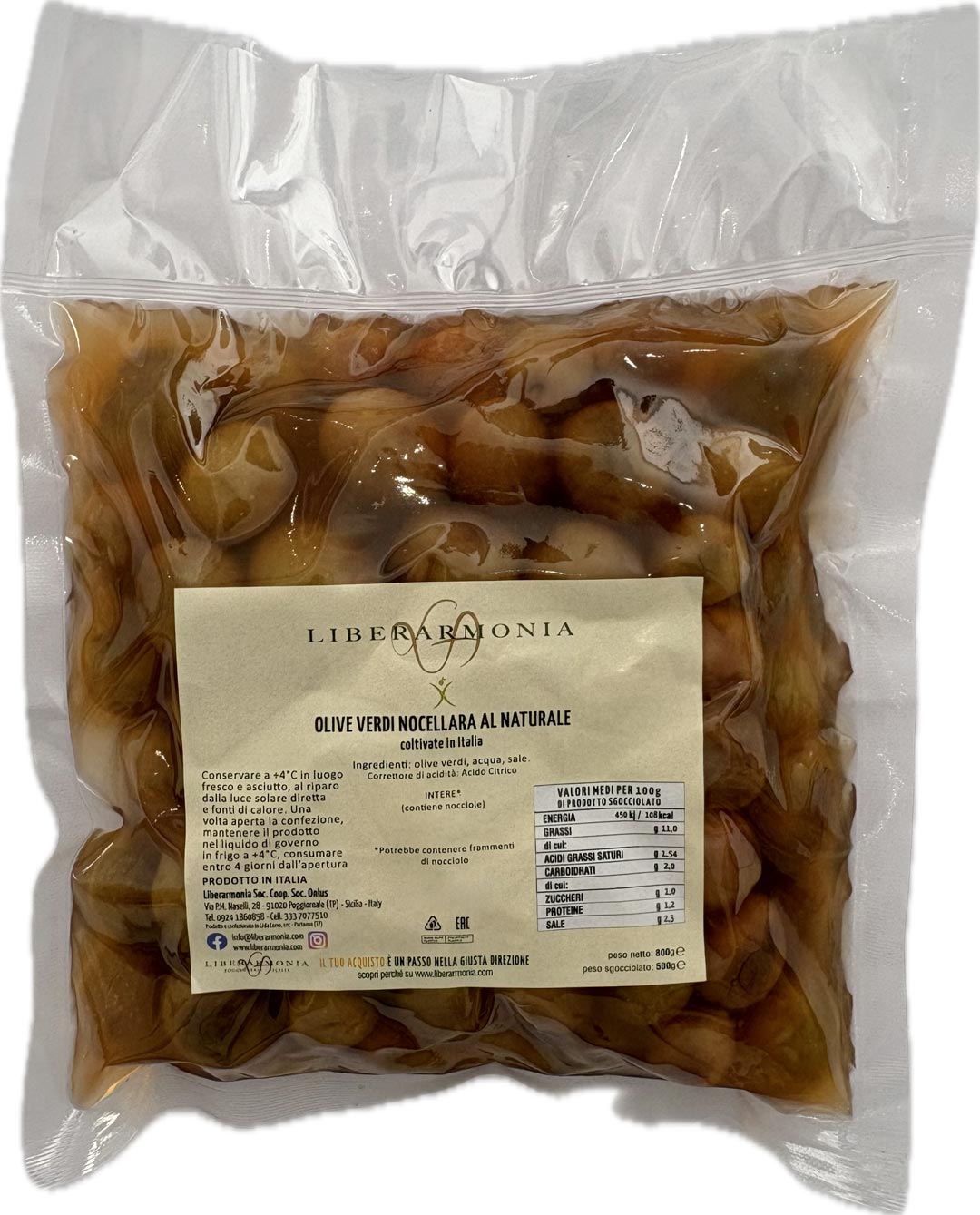 Olive verdi della varietà Nocellara del Belice, cultivar autoctona siciliana originaria della Valle del Belice, raccolte e lavorate con metodi tradizionali, conservate al naturale per mantenere intatto il gusto autentico del frutto. Dal sapore equilibrato e leggermente amarognolo, sono ideali come antipasto, per arricchire insalate, piatti freddi, contorni e preparazioni della cucina mediterranea. Un prodotto semplice e genuino, che esprime la qualità della materia prima e il legame con il territorio. Un alimento che unisce tradizione, qualità e impegno etico, simbolo di un’agricoltura che valorizza il lavoro e la legalità.