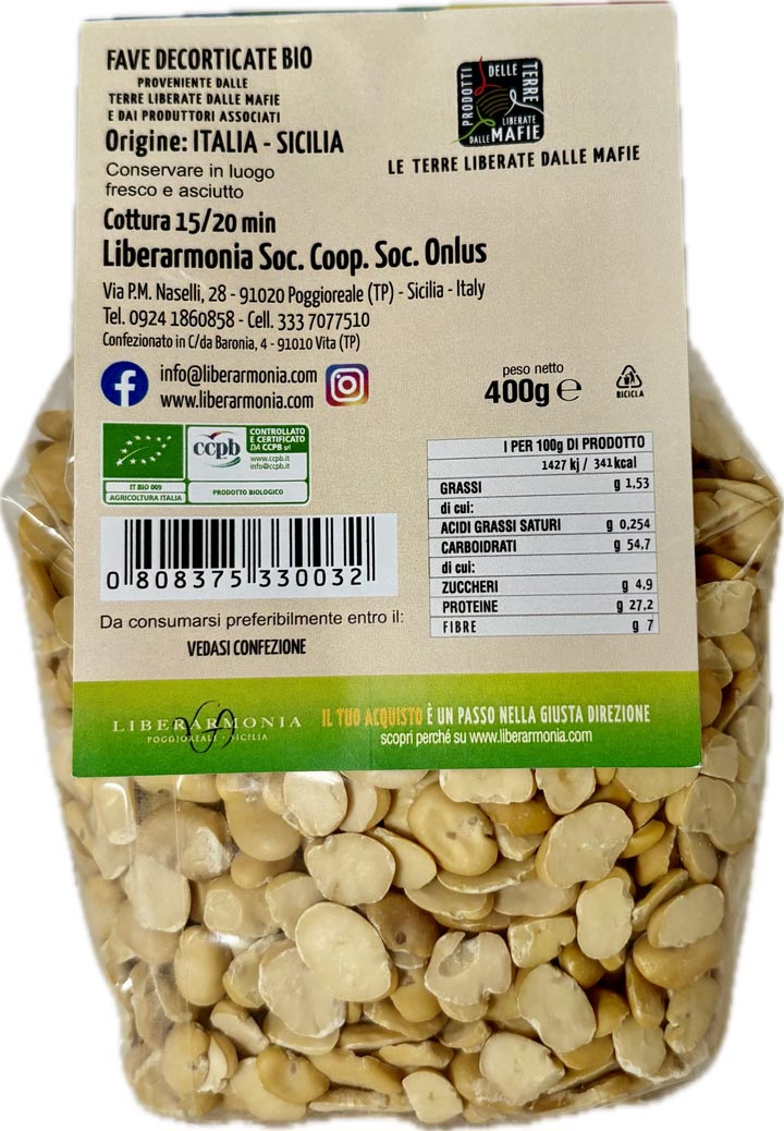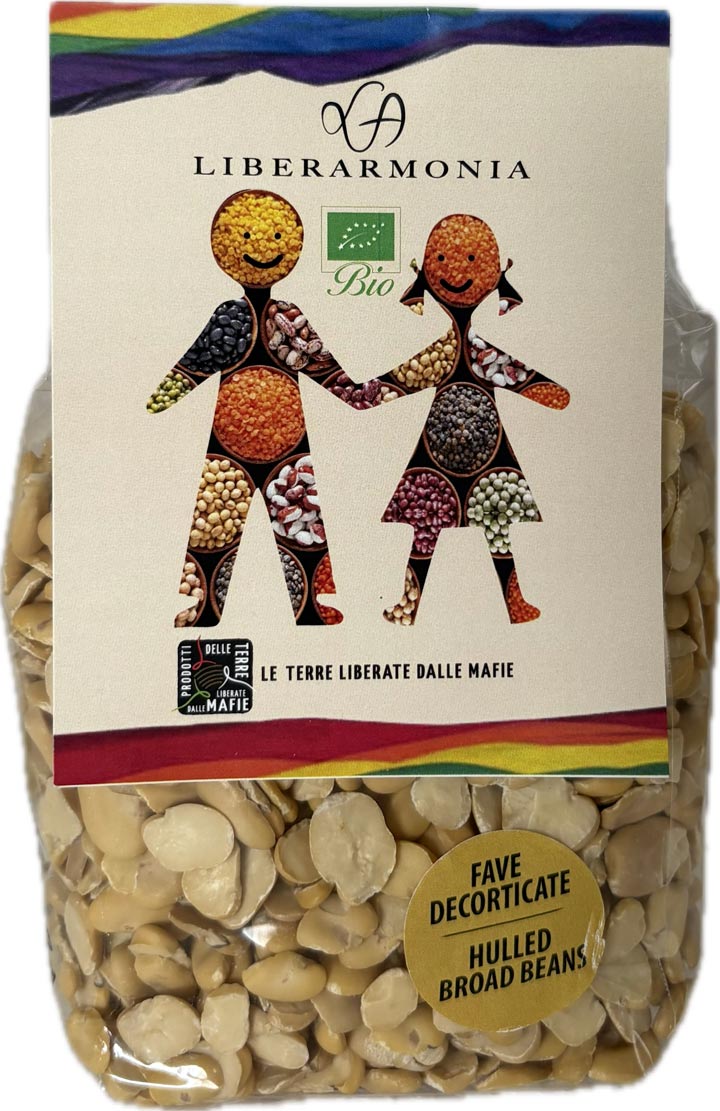 Fave decorticate biologiche provenienti dalle terre liberate dalle mafie e dai produttori associati.